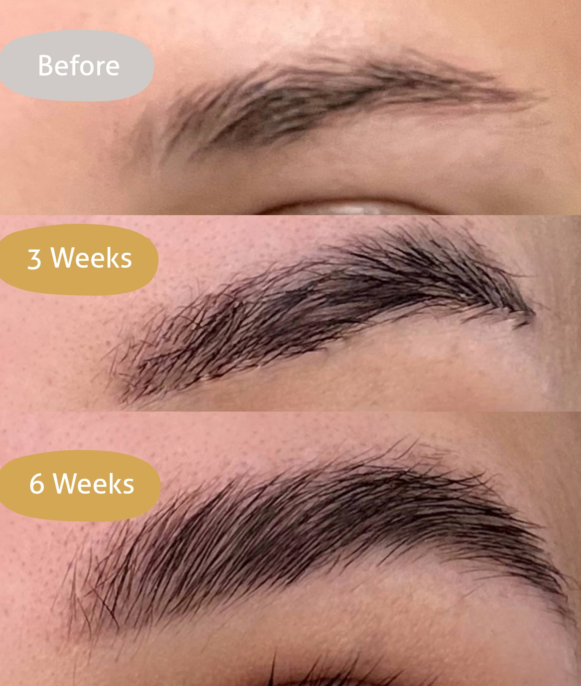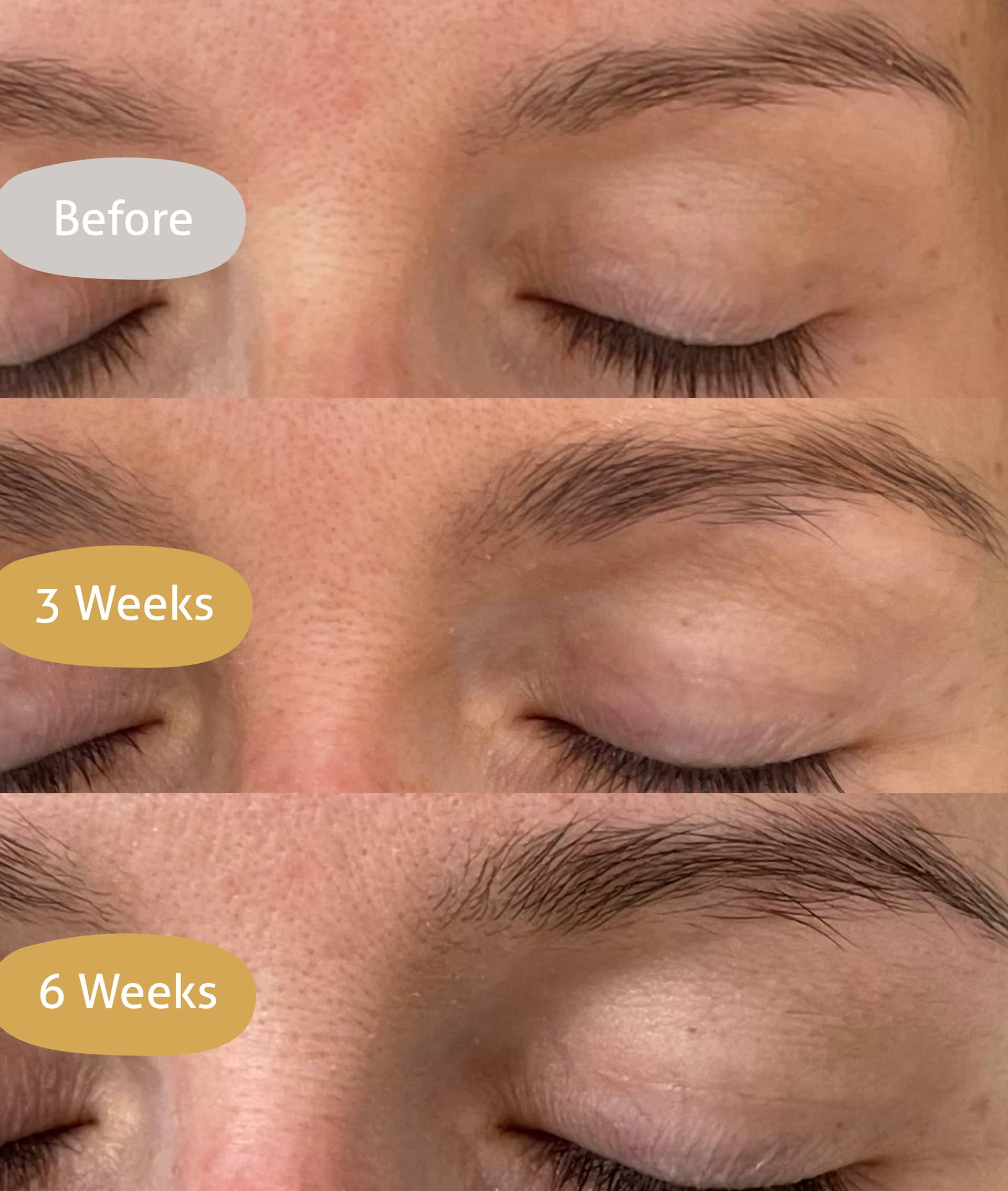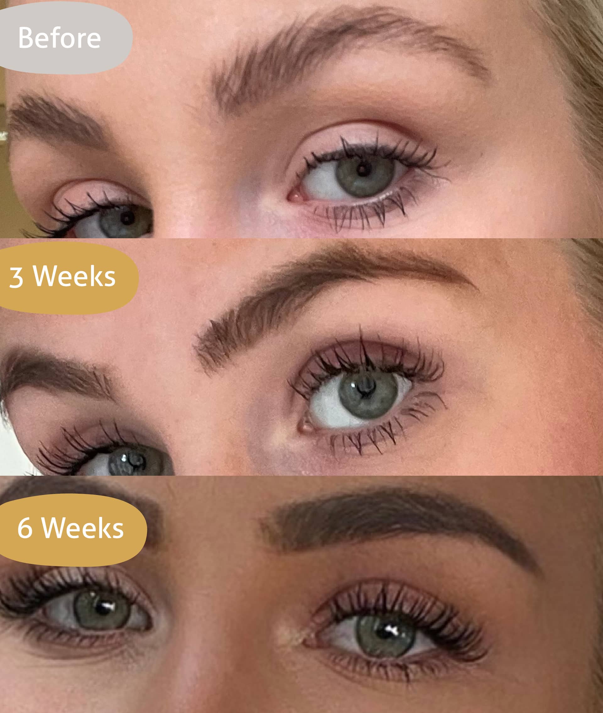 „Im Alter von 16 oder 17 Jahren habe ich angefangen meine Augenbrauen sehr dünn zu zupfen. Dies hatte zur Folge, dass sie irgendwann so geblieben und nicht mehr nachgewachsen sind. Heute habe ich wieder volle und voluminöse Augenbrauen, die ich nicht mehr vermissen möchte – sie verleihen meinem Gesicht viel mehr Ausdruck. Mit unserem Augenbrauenserum haben wir eine intensive Pflege entwickelt, die die Härchen deiner Augenbrauen von der Wurzel an pflegt. Es ist selbstverständlich hormonfrei, weshalb es auch in der Schwangerschaft angewendet werden kann.“