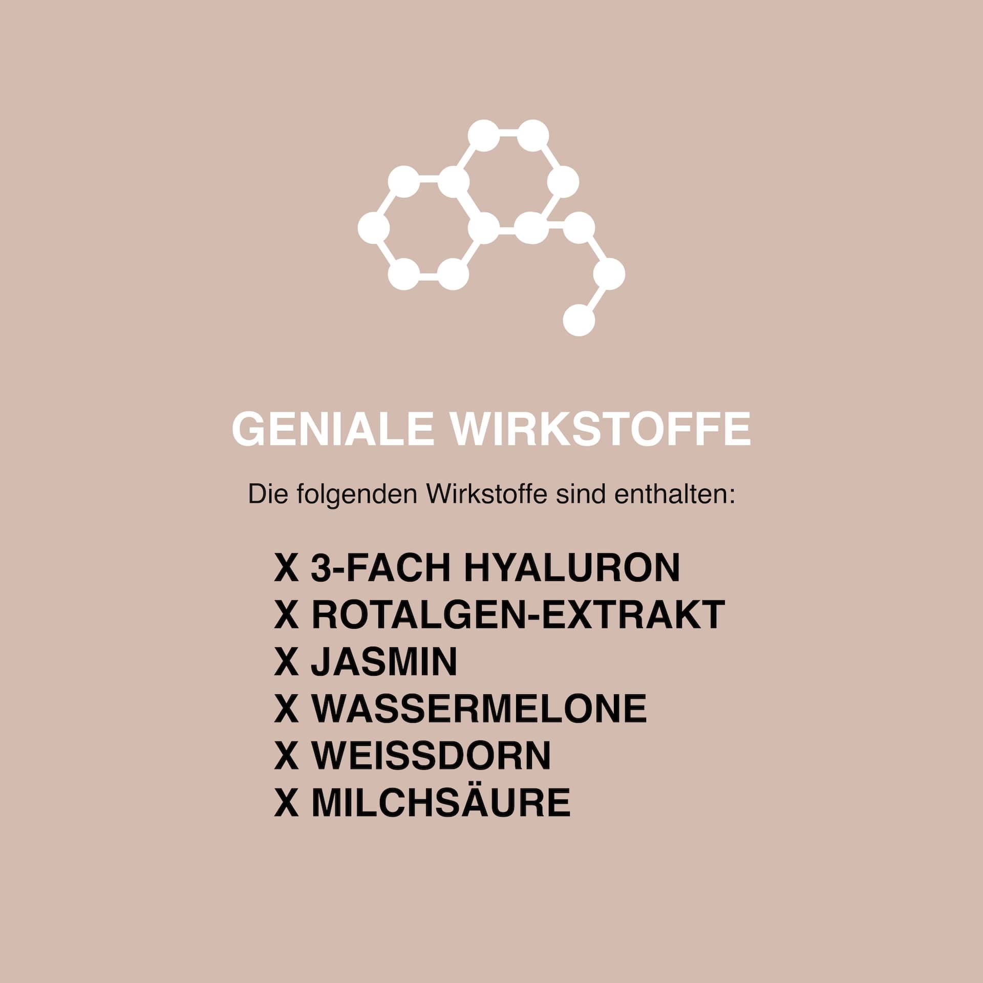 Durch optimale Feuchtigkeitsversorgung und Stimulierung der Zellneubildung ist Hyaluron die perfekte Lösung für strahlende, jugendlich aussehende Haut! Unsere hochwertige Powerformel kombiniert hochdosiertes 3-fach Hyaluron mit Vitamin C und mineralhaltigem Rotalgenextrakt, um die Wirkung optimal zu entfalten.