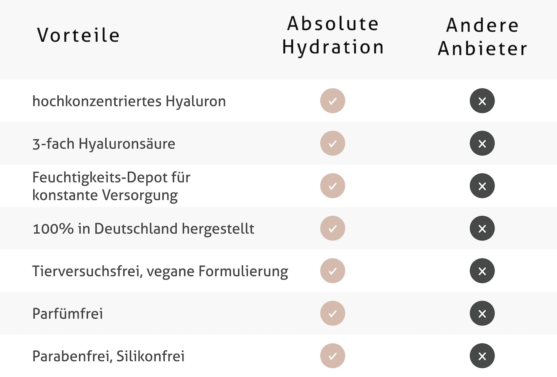 ✓ Kombination aus hoch-, mittel-, und niedermolekularer Hyaluronsäure