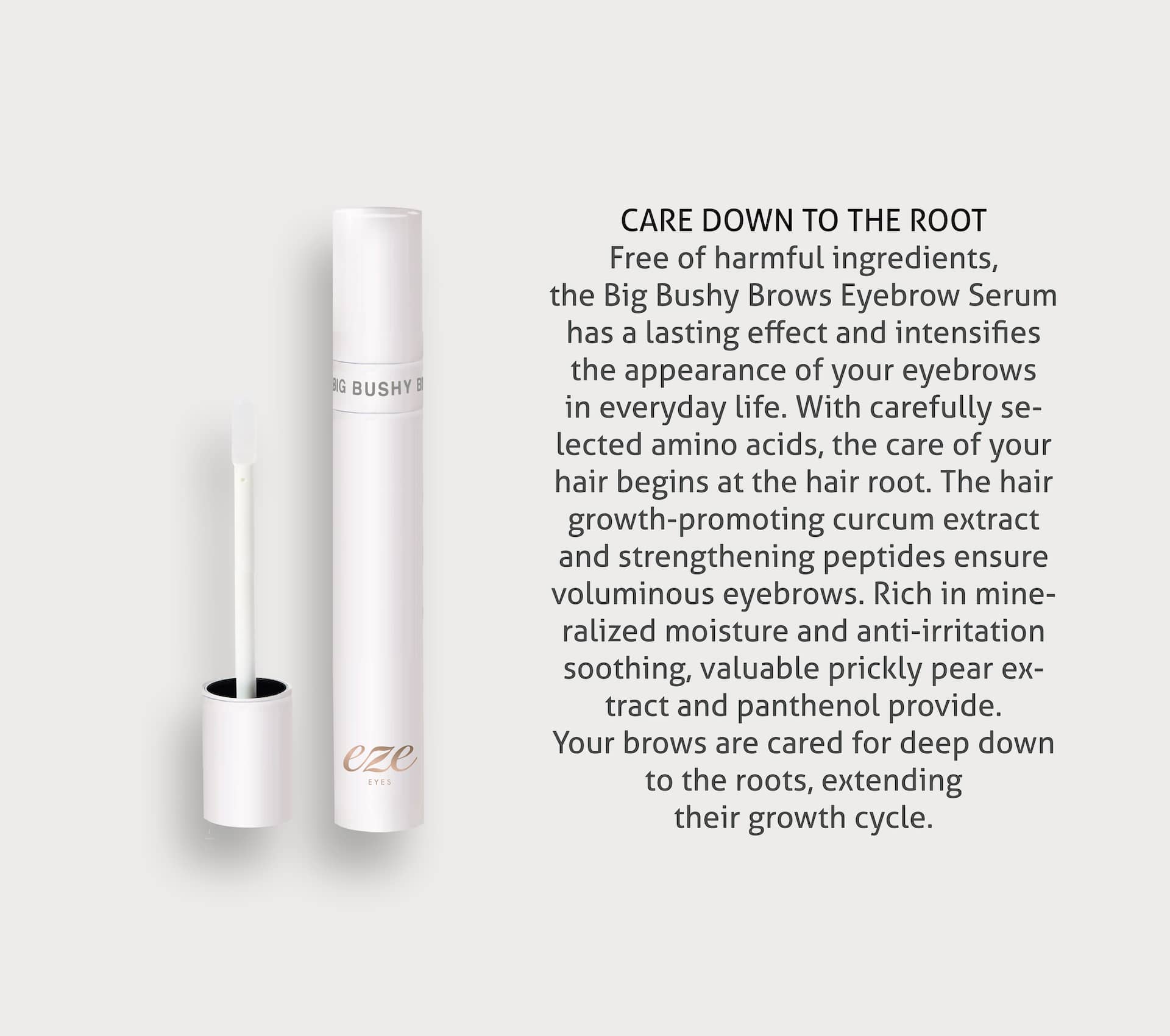 A carefully selected interplay of amino acids begins the care of your hair in the hair root. The hair growth-promoting curcum extract and strengthening peptides ensure voluminous eyebrows that impress yourself. Valuable prickly pear extract and panthenol provide richly mineralized moisture and a soothing effect that prevents irritation. Thanks to the blood circulation-promoting effect of the red ginseng extract, the revitalizing substances supply your hair roots better than is known and let you shine with a new shine. The Big Bushy Brows Eyebrow Serum is vegan, cruelty-free and free of prostaglandins and parabens. With regular use, it has been scientifically proven to lengthen your eyebrow hairs in the long term and pamper your eye area - without hormones, prostaglandins and parabens.