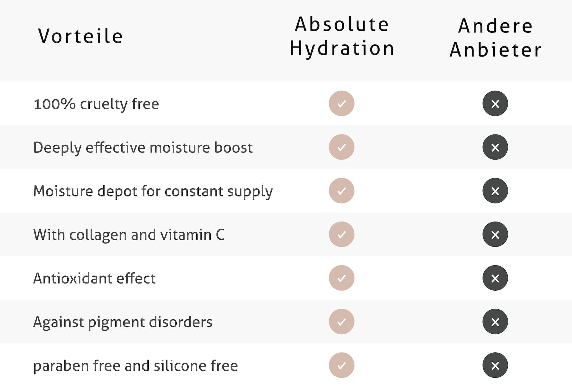 Highly concentrated hyaluronic acid provides the skin with deep moisture, fills dryness wrinkles and creates a water cushion that protects like a shield against environmental toxins, UV radiation and free radicals. Panthenol and collagen also help to lock in moisture deep in the skin and store it in a depot, which means the skin is sustainably hydrated.